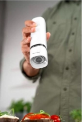Výkonný motor napájí Li‑ion akumulátor s dlouhou výdrží. Průhledové okénko vám dá okamžitý přehled o množství koření uvnitř.