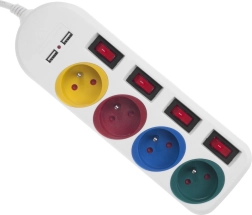 Tato listva zasilająca nabízí pohodlné řešení pro moderní domácnosti, které vyžadují připojení více zařízení. Díky čtyřem barevně označeným zásuvkám a jednotlivým vypínačům pro každou zásuvku lze snadno organizovat a kontrolovat přívod energie.