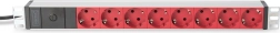 Profesionální PDU lišta DIGITUS je navržena pro 19″ racky a nabízí spolehlivou distribuci napájení v rozsahu 220–240 V při 50/60 Hz. Osm červených zásuvek schuko (CEE 7/3) s ochranným kontaktem je pootočeno o 35°, což zjednodušuje připojování napájecích kabelů a šetří místo v rozvaděči.