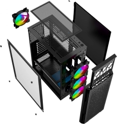 Stylová herní skříň Fornax 400X kombinuje vynikající airflow, temperované sklo a ARGB podsvícení pro perfektní vzhled i chlazení. Nabízí přední prachový filtr, magnetický horní filtr, moderní spodní montáž zdroje a rychlé USB 3.1 SuperSpeed porty – ideální základ pro výkonnou a tichou PC sestavu.