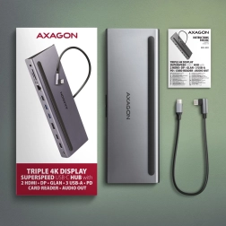 Výkonný hub Axagon HMC-4KX3 umožňuje připojení tří monitorů současně, každý s rozlišením až 4K/30Hz. Díky podpoře HDR zažijete širší paletu barev a kontrastů. Rozhraní USB 3.2 Gen 1 umožňuje rychlý přenos dat až 5Gb/s, což zaručuje efektivní práci se soubory.