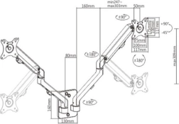 Tento nastavitelný držák na dva monitory je navržen tak, aby poskytoval maximální komfort a flexibility uživatelům, kteří potřebují nastavit monitory podle svých preferencí. S jeho otáčecími a výsuvnými rameny můžete snadno měnit úhel čtení a přecházet mezi horizontálním a vertikálním režimem.