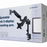 Držák na dva monitory pomáhá ušetřit místo na stole a zároveň zajišťuje ergonomické nastavení obrazovek.