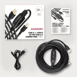 S aktivním kabelem USB 2.0 AXAGON ADR-220B o délce 20 metrů snadno připojíte zařízení jako je tiskárna, skener či ploter ke svému počítači, umožňující připojení i na větší vzdálenosti oproti pasivním kabelům. Zesiluje přenášený signál a lze ho rozšířit o další prodloužení.