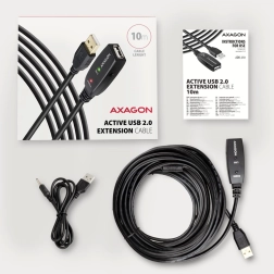 Aktivní USB 2.0 prodlužovací kabel AXAGON ADR-210 o délce 10 m spolehlivě přenáší data na velké vzdálenosti. Integrovaný zesilovač stabilizuje signál, možnost přídavného napájení zajišťuje bezproblémový provoz i u náročnějších zařízení. Vysoká spolehlivost, rychlost až 480 Mb/s, podpora Plug & Play a kompaktní provedení repeateru pro snadnou instalaci.