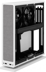 Stylový design: Přední strana je tvořena látkou a CNC obráběným hliníkovým rámem s páskem Power LED. Přední porty obsahují 2x USB 3.0, 1x USB typu C a kombinovaný mikrofonní/sluchátkový port.