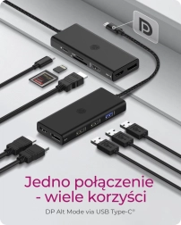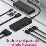 Design a výkon: Kompaktní hliníkové tělo nabízí stylový vzhled a umožňuje pohodlný přístup k důležitým rozšiřujícím portům, zároveň zajišťuje efektivní odvod tepla. Rozšiř své obzory: Snadné víceúlohové zpracování díky možnosti připojení více monitorů. Nabíjení zařízení: Technika nabíjení přes port Type-C umožňuje napájení připojeného notebooku s výkonem až 100 wattů. Parťák na cesty: Díky kompaktnímu designu se malá dokovací stanice vejde do každé kapsy. Elegantní hliník zajišťuje robustnost na cestách.