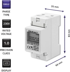 Elektronický měřič energie od značky Qoltec poskytuje konstantní monitorování odběru elektrické energie pro jednofázová zařízení napájená střídavým proudem 230V při frekvenci 50Hz. Je vybaven LED indikátorem, který signazuje spotřebu energie, a LCD displejem, který zobrazuje hodnotu odebrané energie na základě počtu impulzů s konstantou 1600 imp/kWh. Měřič je navržen pro montáž na DIN lištu TH35, což umožňuje snadnou instalaci a použití.