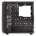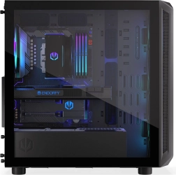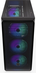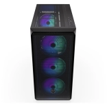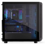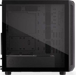 Skříň nabízí moderní design s průhledným bočním panelem ze skla a světly ARGB, která přidávají estetickou hodnotu.
