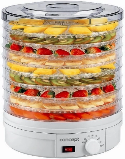 Sušička potravin Concept vám umožní prodloužit životnost vašich potravin, aniž byste ztratili důležité vitamíny a minerály. Nyní můžete snadno sušit ovoce, zeleninu, bylinky a dokonce i maso.