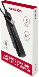 Kompaktní a tenký adaptér AXAGON ADSA-FP2A propojí 2.5" SATA SSD nebo HDD s počítačem přes USB-A 5 Gb/s. Nabízí rychlý přenos až 5 Gb/s, snadné Plug & Play připojení, podporu UASP, TRIM a S.M.A.R.T., a napájení přímo z USB bez nutnosti externího zdroje.