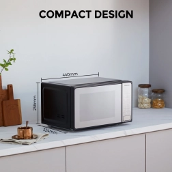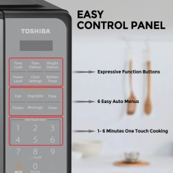 Objevte snadné každodenní vaření s mikrovlnnou troubou Toshiba, která díky kompaktním rozměrům zapadne do většiny kuchyní. Moderní zrcadlové provedení stylově doplní interiér a přehledný dotykový panel zajistí rychlý přístup k nejoblíbenějším funkcím.