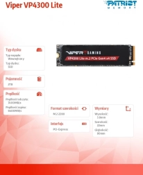 VIPER VP4300 Lite je moderní M.2 NVMe SSD pro náročné hráče a tvůrce, kteří vyžadují špičkový výkon a stabilitu. Nabízí sekvenční rychlosti až 7400 MB/s pro čtení a 6400 MB/s pro zápis, přičemž pro PS5 dosahuje rychlosti čtení cca 6100 MB/s, což splňuje požadavky pro rozšíření úložiště konzole.