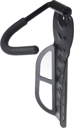 Montáž je snadná – držák připevníte ke stěně pomocí dodaných hmoždinek a šroubů. Gumový povrch háku spolehlivě chrání ráfek před oděrkami, takže je tento držák ideální do domácností i garáží.
