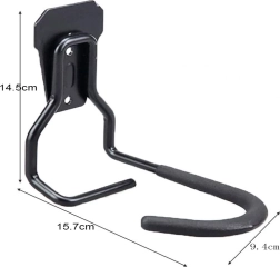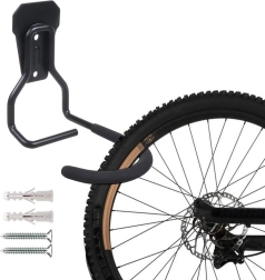 Praktický nástěnný držák na kolo umožní uložit bicykl vertikálně a ušetřit místo v garáži, sklepě i bytě. Robustní ocelová konstrukce s nosností až 20 kg, hák s gumovým potahem proti poškrábání ráfku a snadná montáž díky přiloženým hmoždinkám a šroubům zajistí bezpečné a stabilní uložení kola.