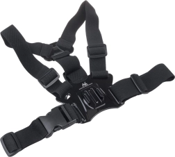 Postroj je vyroben z kvalitního plastu a pružné gumy pro vysokou odolnost a komfort. Umožňuje montáž smartphonu, fotoaparátu i GoPro na střed hrudi pro stabilní záběry z perspektivy první osoby. Vestavěné kontrolní zrcátko pomáhá rychle nastavit správný záběr.