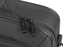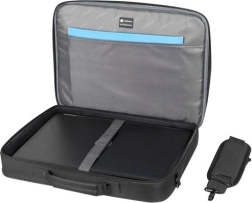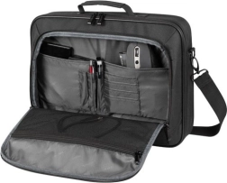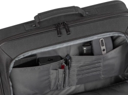Přední kapsa nabízí prostor pro příslušenství, jako jsou myši a disky, a speciální organizér udržuje vše na svém místě. Odkryjte prostor pro kabely a napájecí zdroj.