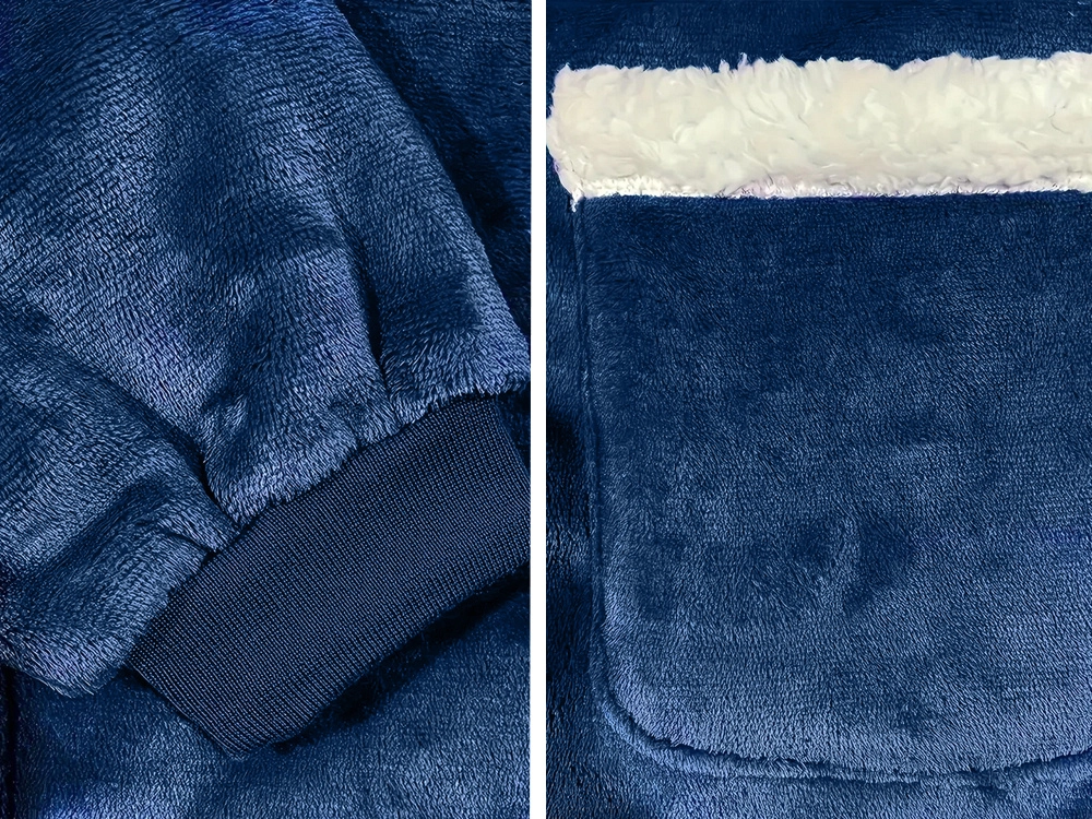 Vyzkoušejte komfort a teplo naší hřejivé dekové mikiny, která je navržena pro maximální pohodlí. Tmavě modrá barva dodává stylový nádech a hodí se k různým příležitostem. Díky oversize střihu je vhodná pro dospělé i děti, poskytne teplo během večerů strávených u filmu, u krbu, nebo na terase.