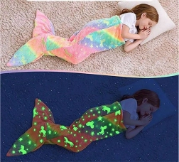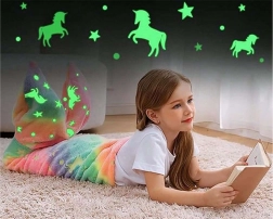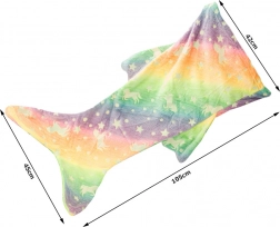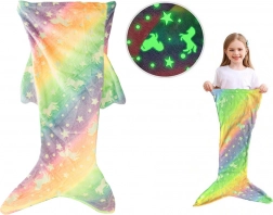 Objevte perfektní společníka na lenošení: měkoučkou, hřejivou deku ve tvaru ocasu mořské panny. Duhové barvy a roztomilé motivy jednorožců a hvězdiček dodají dětskému pokoji veselou atmosféru – a když zhasnete, dekor magicky září. Skvělá na čtení, sledování pohádek, hry i odpolední odpočinek.