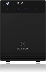 Integrovaný ventilátor udržuje disky v optimální teplotě, zatímco LED kontrolky přehledně zobrazují napájení a aktivitu jednotlivých disků.