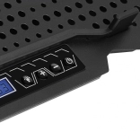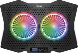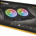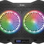 Tato univerzální chladicí podložka je navržena pro efektivní odvod tepla a tichý provoz. Pevná kovová perforovaná mřížka zlepšuje proudění vzduchu a chrání zařízení, zatímco RGB osvětlení dodá vašemu stolu styl. Integrovaný LCD panel umožňuje rychlé nastavení rychlosti ventilátorů i světelných efektů.
