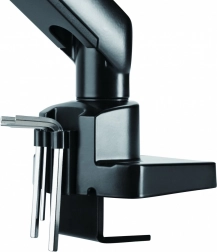 Držák můžete upevnit na stůl pomocí svěrkové základny, což šetří místo. Alternativně jej lze připojit přímo do průchodky stolu.
