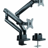 Praktický dvojitý držák na monitory do 32" s pružinovým mechanismem umožňuje snadnou montáž dvou monitorů. Vyjímatelné VESA adaptéry a důmyslné vedení kabelů zajišťují snadné použití a organizaci prostoru.