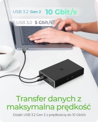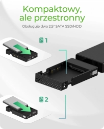 Rozšiřte kapacitu a zjednodušte si správu dat s externí hliníkovou skříní pro dva 2,5" SATA SSD/HDD. Zařízení podporuje čtyři režimy: RAID 1 pro maximální ochranu, RAID 0 pro rychlost, SINGLE pro nezávislé disky a LARGE pro sloučení kapacity. Připojení USB 3.2 Gen 2 (10 Gb/s) zajišťuje bleskové kopírování a plynulou práci s obsáhlými projekty.