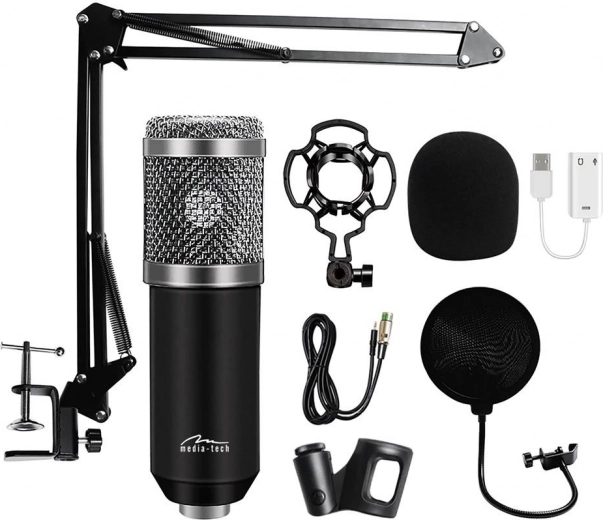 Sada studiového mikrofonu s kondenzátorovým příslušenstvím je určena pro začínající i pokročilé uživatele, jako jsou hráči, vokalisté, hudebníci, učitelé a další. Obsahuje všechny potřebné komponenty pro profesionální nahrávání.