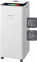 CONCEPT Perfect Air OV2216 spojuje účinné odvlhčování a pokročilé čištění vzduchu v jednom přístroji. Díky kapacitě až 16 l/den a velké nádrži 3,5 l rychle snižuje vlhkost a brání růstu plísní. Čtyřstupňová filtrace s předfiltrem, uhlíkovým filtrem, UVC a ionizátorem zachytí prach, alergeny, pachy i mikroorganismy pro čistší a zdravější domácnost.