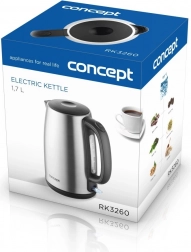 Rychlovarná konvice Concept 1.7l RK3260 vám umožní snadno připravit dostatečné množství vody pro celou rodinu. Je vyrobena z kvalitní nerezové oceli, odolné proti korozi a jednoduché na údržbu.