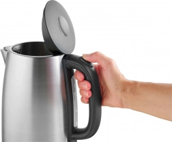 - Jednoduchá obsluha a údržba: Konvice je vybavena tlačítkem pro snadné otevírání víka a má široký otvor pro pohodlné nalévání vody.