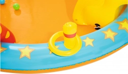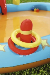 Bohatá výbava včetně kuželek, nafukovacích kroužků, míčků a koše podporuje různé aktivity a rozvíjí koordinaci i motoriku. Rodiče ocení snadné vypouštění díky výpustnému ventilu a jednoduchou údržbu. Perfektní pro odpolední dovádění s kamarády i rodinné radovánky.