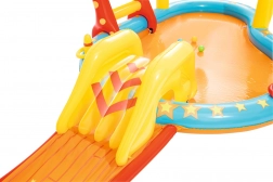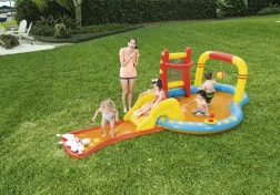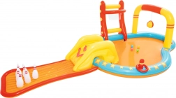 Dopřejte dětem léto plné smíchu a pohybu s nafukovacím vodním hracím centrem BESTWAY. Kombinuje mělký bazének, odnímatelnou skluzavku a zábavné hry jako kuželky, koš a házení kroužků. Díky integrovanému postřiku je hraní osvěžující i v horku. Snadná instalace, bezpečný mělký prostor a bohaté příslušenství zajistí nekonečnou zábavu, aktivní pohyb i příjemné ochlazení v letních dnech.