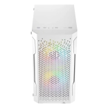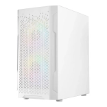 LOGIC Aramis ARGB Mini v elegantní bílé barvě spojuje moderní vzhled a promyšlený airflow. Přední panel s jemným mesh vzorem pouští dovnitř dostatek vzduchu, zatímco dva předinstalované 120mm ARGB ventilátory udrží komponenty v chladu a dodají sestavě styl. Boční panel z tvrzeného skla nechá vyniknout vaší grafické kartě i osvíceným prvkům, přičemž podsvícení snadno přepnete tlačítkem RESET na horním panelu.
