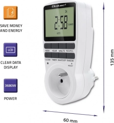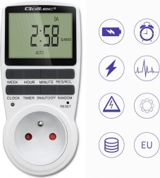 Chytrý způsob, jak šetřit energii a zvýšit komfort doma. Elektronický časový spínač Qoltec s přehledným LCD displejem umožní automaticky zapínat a vypínat spotřebiče podle vašeho rozvrhu. Podporuje až 10 programů denně, přepínání 12/24 h, automatickou změnu letního/zimního času a náhodný režim pro simulaci přítomnosti v domácnosti. Maximální zatížení 16 A / 3680 W pro běžné spotřebiče na 230 V.
