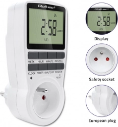 Automatizujte provoz lamp, akvárií, nabíječek, ventilátorů či rychlovarné konvice a snižte zbytečnou spotřebu. Díky přehlednému LCD a intuitivním tlačítkům snadno nastavíte den, hodinu i minutu. Časovač Qoltec nabídne i náhodné spínání, které věrně simuluje přítomnost v bytě a zvyšuje bezpečnost.