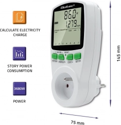 Udělejte si jasno, která zařízení jsou největšími „žrouty“ energie. Qoltec PM0627 poskytuje přesné měření bez odhadů, takže můžete spolehlivě vypočítat náklady a vyhodnotit účinnost úspor. Díky podsvícenému LCD snadno zkontrolujete aktuální výkon, součet kWh, čas i cenu dle zadané sazby.
