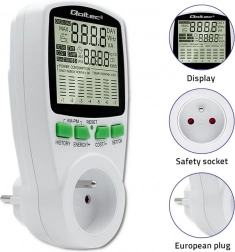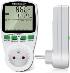 Chytrý zásuvkový měřič spotřeby energie Qoltec PM0627 vám pomůže snížit účty za elektřinu díky přesnému monitoringu. Nabízí velký podsvícený LCD, 7 režimů zobrazení, výpočet nákladů, historii spotřeby a ochranu proti přetížení. Jednoduše zapojíte a ihned měříte výkon, energii i cenu.