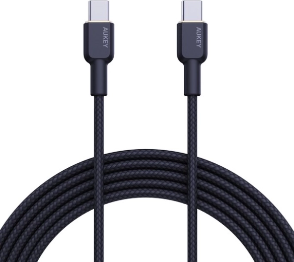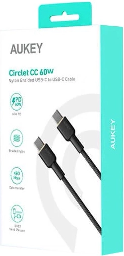 Odolný kabel Aukey USB‑C ↔ USB‑C o délce 1,8 m nabízí rychlé nabíjení Power Delivery 60 W (3 A, 20 V), rychlý přenos dat a prémiový nylonový oplet pro dlouhou životnost bez zamotávání.