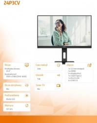 Objevte výkon a flexibilitu s monitorem AOC 24P3CV. Tento monitor s moderním designem disponuje 23,8" IPS panelem, který zajišťuje živé a ostré zobrazení. Četné možnosti připojení, včetně HDMI, DP a USB-C, zajišťují kompatibilitu se všemi vašimi zařízeními.