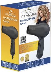 Cestovní fén TITANUM GAIA je lehký a díky skládací rukojeti se snadno vejde do každé tašky. Černé provedení a odolné kvalitní plastové tělo zaručují dlouhou životnost a pohodlné používání v koupelně i na cestách.