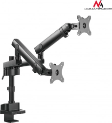 Univerzální stolní držák pro dva monitory MACLEAN BRACKETS MC-812 nabízí ergonomické nastavení, úsporu místa na stole a pevnou kovovou konstrukci. Díky plynulé regulaci náklonu, otočení a výšky snadno nastavíte ideální polohu obrazovek. Kompatibilita se standardy VESA 75x75 a 100x100 zaručuje rychlou instalaci bez vrtání do stěn.