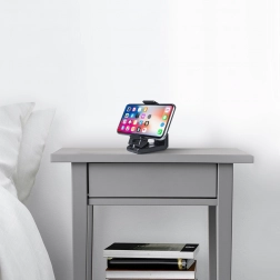 Montáž je otázkou okamžiku: držák jednoduše přicvaknete na hranu stolu, polici, tác v letadle či madlo kočárku. Stejně dobře poslouží i jako stolní stojánek na nočním stolku nebo pracovním stole. Díky skládací konstrukci se vejde do kapsy i malé kabelky, takže jej budete mít vždy po ruce.