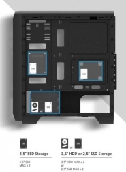 Tato skříň nabízí maximum prostoru pro disky HDD a SSD, přičemž podporuje až 156 mm vysoké chladiče procesorů a grafické karty o délce až 330 mm. Přední a zadní chlazení s možností instalace až 8 ventilátorů zajišťují vynikající proudění vzduchu, což maximalizuje výkon a ochranu komponent vašeho počítače.