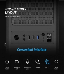 Nechybí ani praktické prvky jako horní panel s konektory, magnetické prachové filtry a dolní prachový filtr. Díky speciální části pro napájecí zdroj je zabezpečen efektivní management prostoru a chlazení.