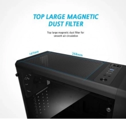 Skříň má dolní filtr pro ochranu před prachem a velký horní magnetický filtr pro dokonalou cirkulaci vzduchu.