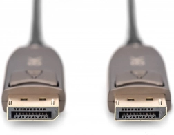 Aktivní hybridní kabel DisplayPort 1.4 AOC umožňuje přenos nekomprimovaného obrazu a zvuku na dlouhé vzdálenosti s propustností až 32,4 Gb/s, rozlišením až 8K při 60 Hz a podporou HDR. Díky kombinaci optických vláken a měděných vodičů je odolný vůči EMI rušení, má malý průměr, snadnou instalaci Plug & Play a podporuje HDCP 2.2, EDID a CEC.
