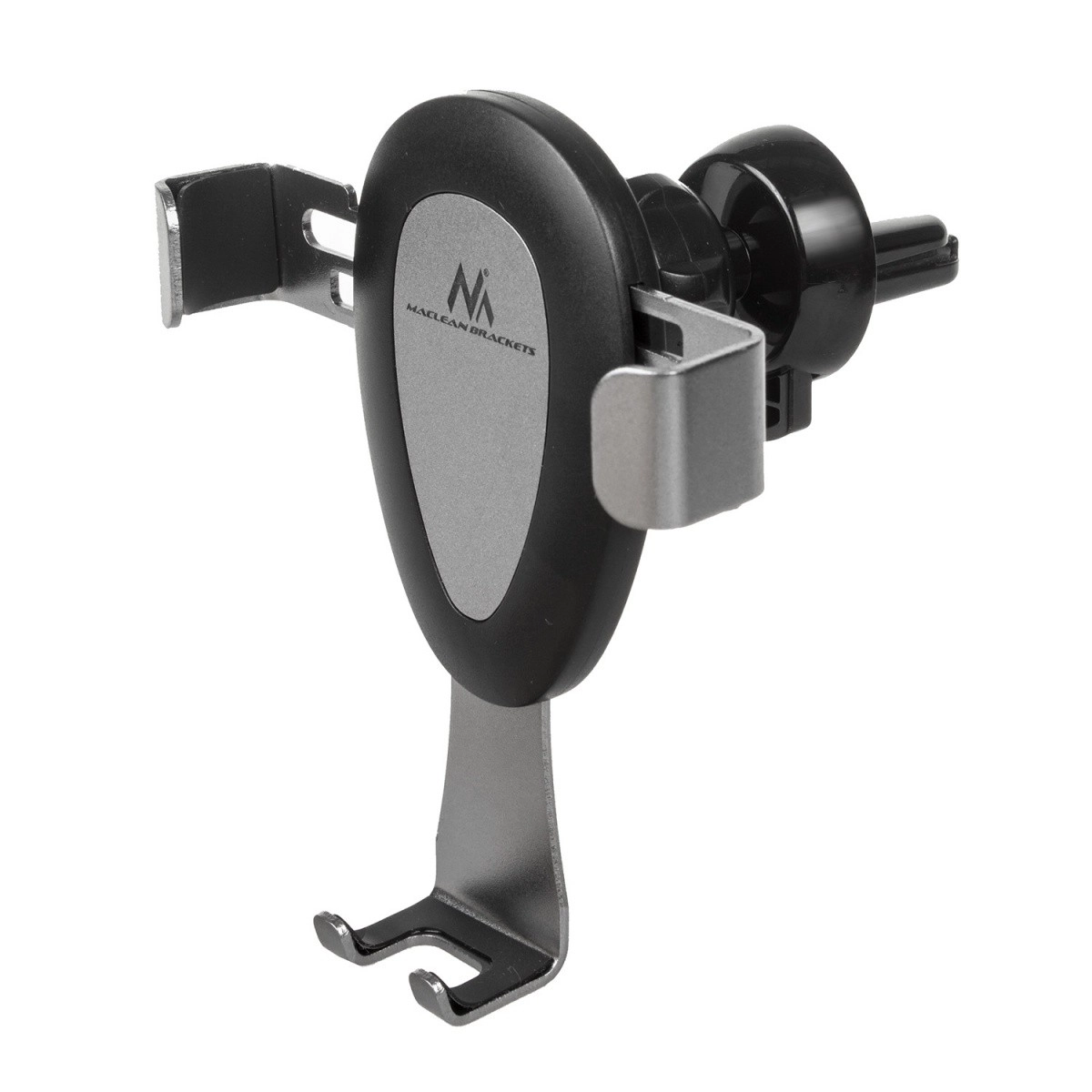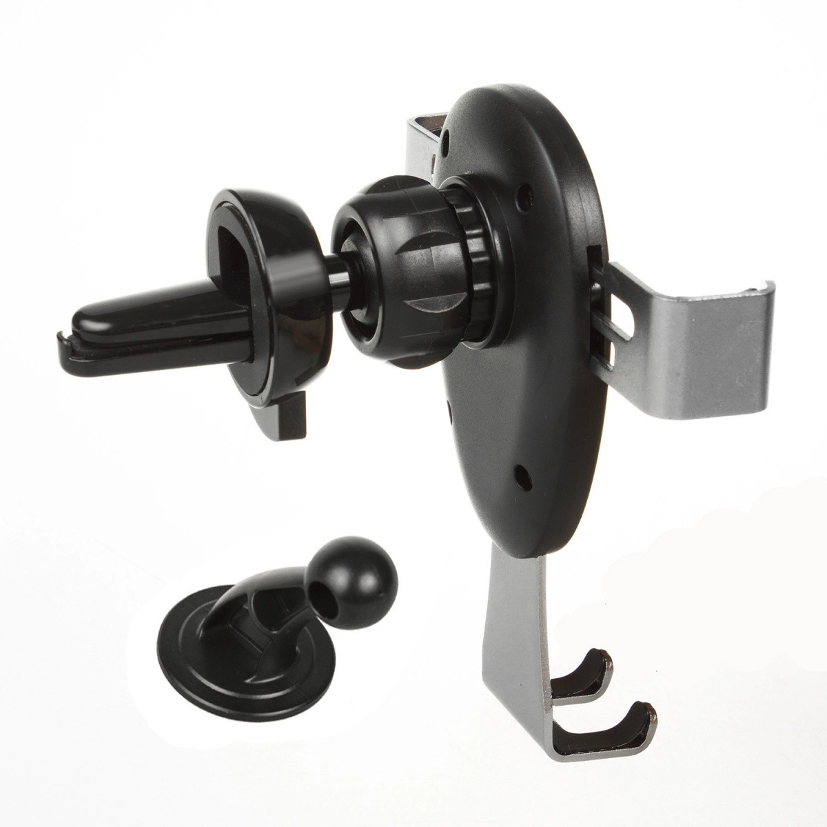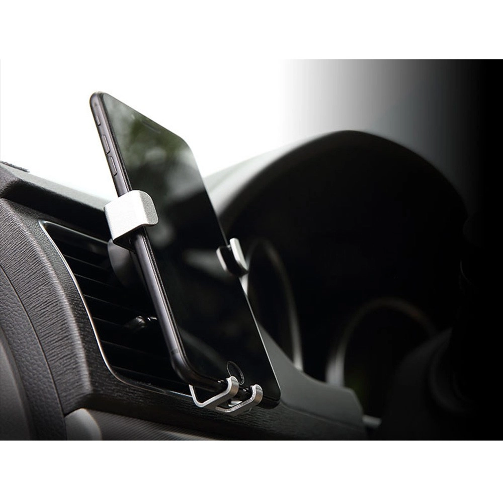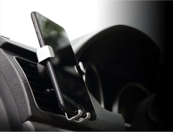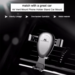 Gravitační držák do auta pro mobilní zařízení, který se připevňuje na mřížku nebo čelní sklo. Stačí do něj umístit telefon nebo smartphone a čelisti se automaticky zavřou. Je vybaven otočnou hlavou, která umožňuje umístit telefon v libovolném úhlu. Součástí balení je také stojánek, který umožňuje montáž například na palubní desku.