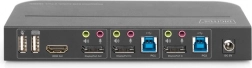 - 2 × DisplayPort, 2 × USB-B 3.0, 2 × audio in (3,5 mm), 2 × audio out (3,5 mm)